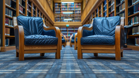 A serene library interior filled with rows of bookshelves, cozy seating areas, and soft lighting, providing a tranquil environment for study and reflection.