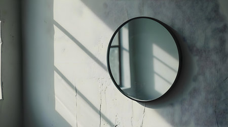 This elegant dark mirror on a textured wall evokes a mysterious atmosphere, ideal for enhancing interior decor or artistic projects.