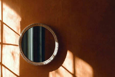 Round Mirror Reflecting Sunlit Room Interior