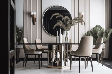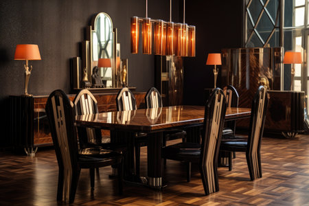 dining room set in art deco style, table and chairs, created with generative ai