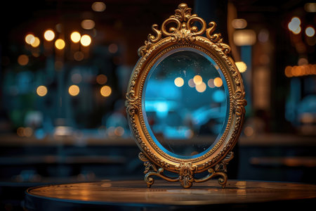 Ornate Gold Mirror Reflecting Blurry Lights