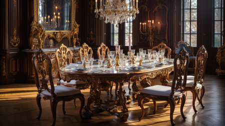 Luxury dining room interior in classic style. Luxury furniture.