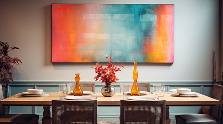 the dining room table looks naturally cluttered, with items placed casually generative ai
