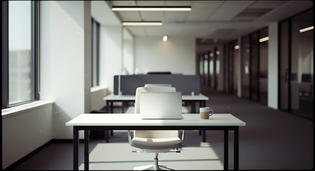 Beautiful blurred background of a light modern office, generated by AI. High quality photo