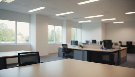 Modern office interior with furniture and equipment. Selective focus. Blurred background