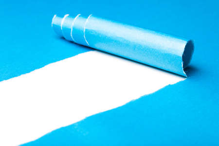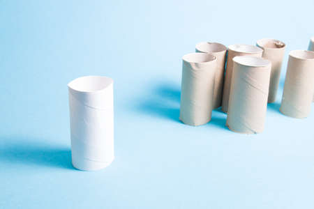 bushes from toilet paper stand in a heap separately from one sleeve which is different in white social distance concept, blue background, copy space