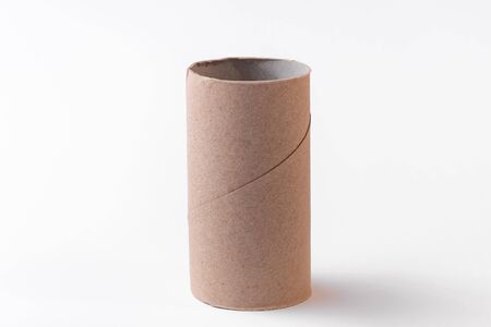 An empty roll of toilet paper isolated on a white background. Copy space. Space for text