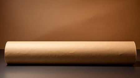A beautifully rolled piece of brown craft paper on a textured surface, featuring a soft blurred background with warm yellow and orange tones, perfect for creative projects and artistic inspiration.