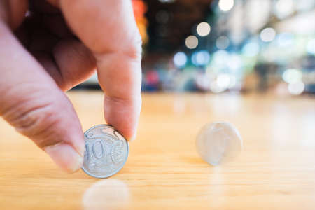 Closeup fingers going to spin the coin for head or tail game, take a chance in some decision to move on