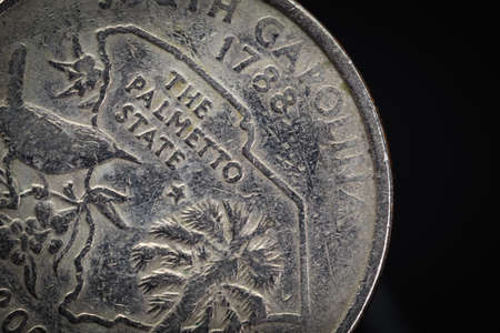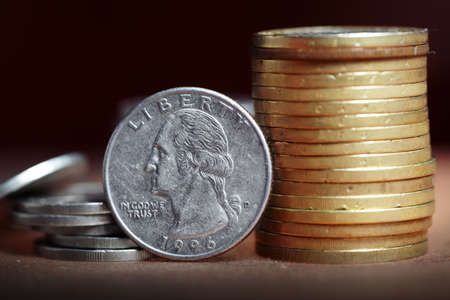 Various American money, Washington quarter dollar or 25-cent silver coin. Assorted Usa Coins. Money, Financial, Business Growth concept. Finance background.