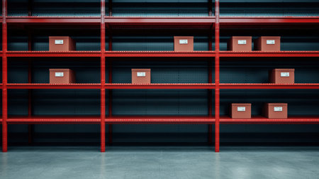Empty rack shelf in mega storehouse. Logistic concept. Generative AI