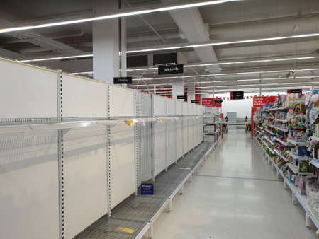 Gold Coast, Australia - March 17, 2020: Coles supermarket empty toilet paper shelves amid coronavirus fears, Australians panic buying toilet paper