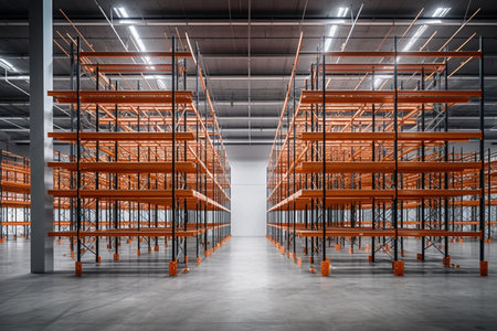 Factory warehouse steel reinforcement, high stack shelving with Generative AI Technology