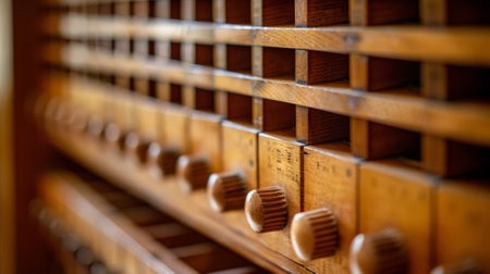 Antique wooden drawers. Shady vintage background. Retro pub interior