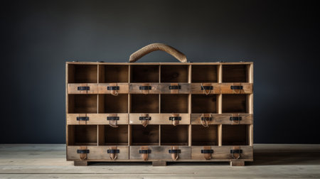 Empty wooden crate with compartments for artisanal goods