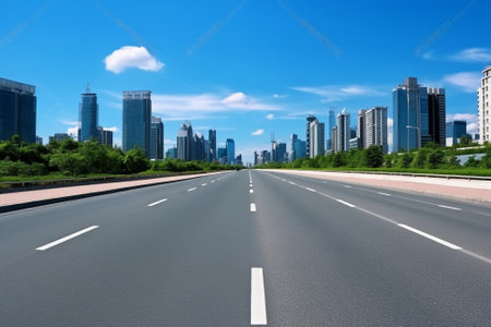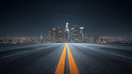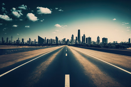 Empty highways and urban skylines, A photo of Empty asphalt road and modern city AI generated
