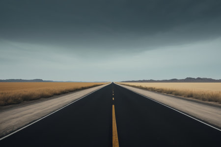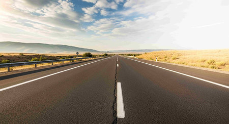 The long stretch of highway seems to disappear into the horizon creating an endless road that beckons to adventurous drivers. . AI generation