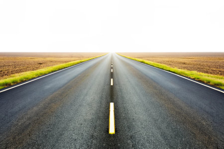 Road highway leading to the horizon. Travelling journey dreaming perspective.
