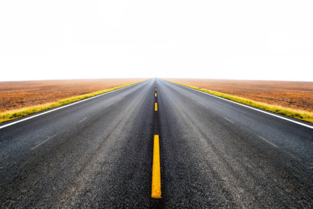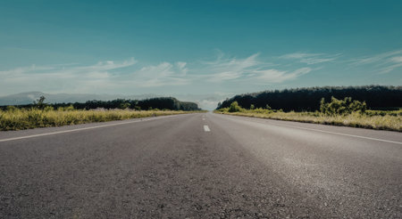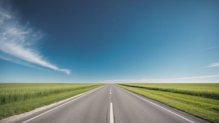 An empty, open road stretching into the horizon under a clear sky, the simplicity of the scene evoking a sense of freedom and endless possibility.