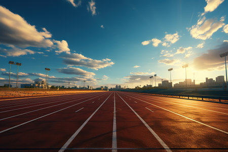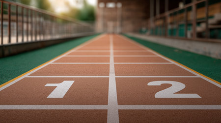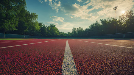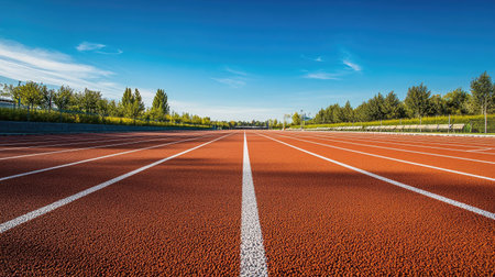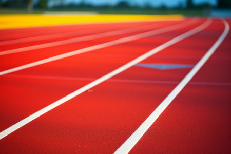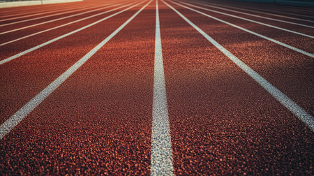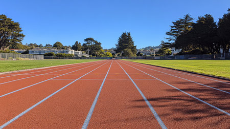 Perspective view of lanes on outdoor track inspires competition and discipline perfect for sports clubs school programs athlete campaigns and wellness advertising