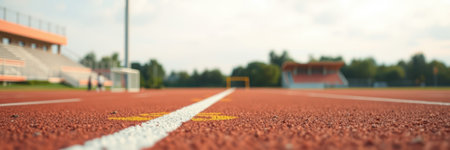 Close-up shot of a stadium track lane, no runners, clean background with room for text or logo