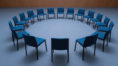 empty chairs in a circle for group coaching, created with generative ai