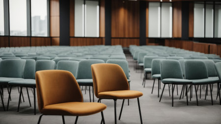 Conference hall with empty chairs in row