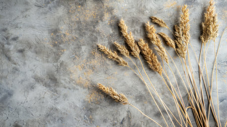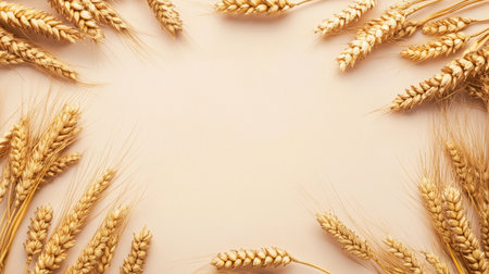 A stunning arrangement of golden wheat stalks framing a blank space, perfect for showcasing agricultural themes, natural designs, or culinary uses.
