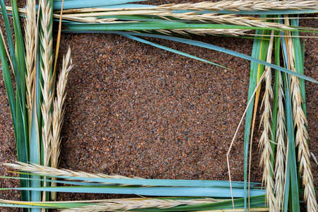 Ears Wheat or Rye close up. Wonderful Rural Scenery. Small Depth of Fields. Soft Focus. Rural Background. Creative Picture of Nature. Label art design. Idea of Rich Harvest.