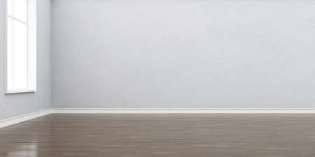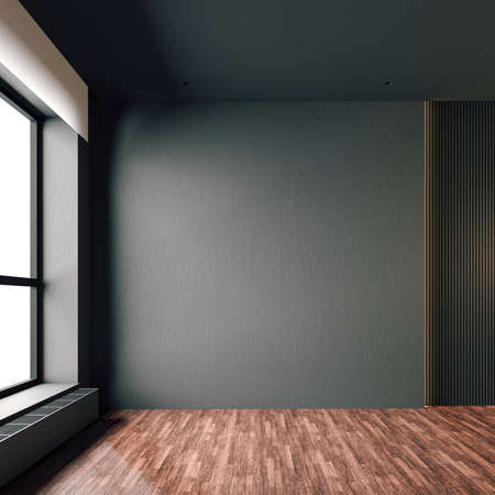 Empty room with window, white wall and wooden floor. 3d rendering