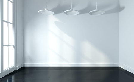 Empty white room with sunlight from the window on the wall.3d rendering