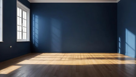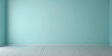 Empty room with blue wall and wooden floor. 3D rendering.