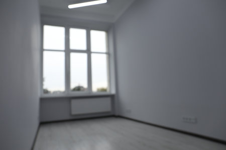 Blurred view of window in empty renovated room