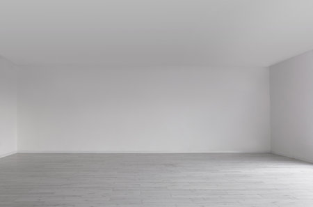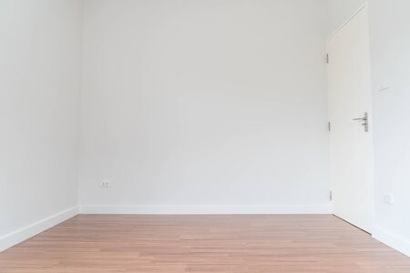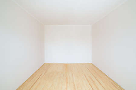 Home interior, empty room. White wall and ceiling with wood floor