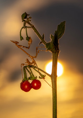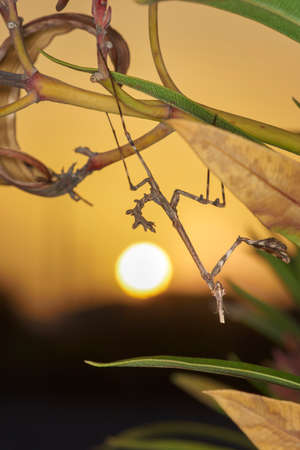 Nymph of Mantis Empusa fasciata in Croatia at sunset