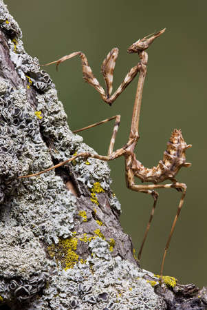 A master of disguise, a bark mantis blends seamlessly with the lichen-covered twig it rests upon. This incredible example of natural camouflage showcases the patient predator in its element, perfectly adapted for survival and ambush in the wild.