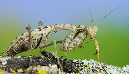 Close up of pair of Beautiful European mantis (Mantis religiosa)