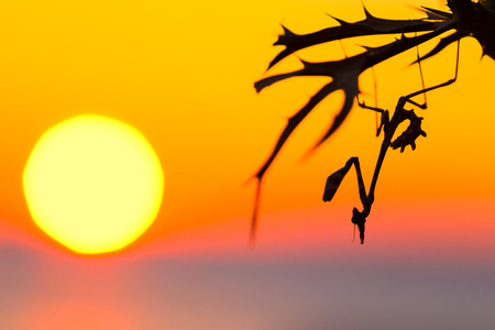 Mantis at sunset. Ukraine. kinburn spit