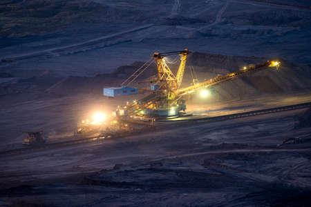 Bucket-wheel excavator in open-cast coal mining in Garzweiler in the Ruhr area in Germany in the evening