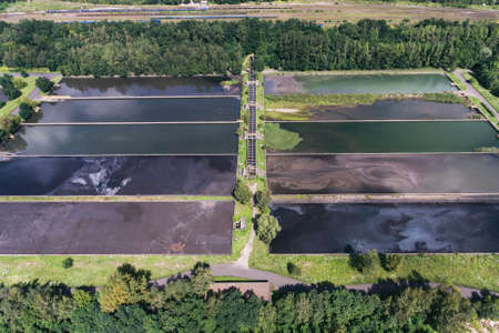Modern sewage treatment plant, aerial view from drone