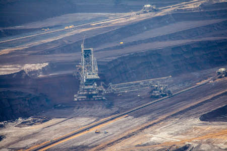 view into the brown cole opencast mine Hambach, focus on a coal excavator that is working in the mine
