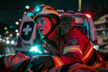 A paramedic administering CPR to a patient during an emergency response in a high-pressure scenario -