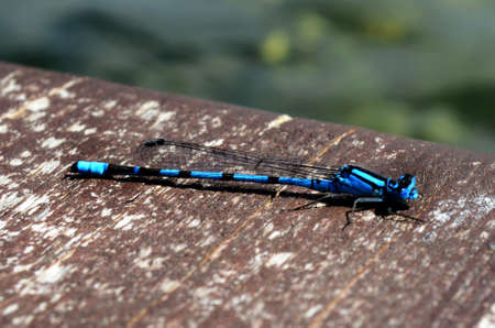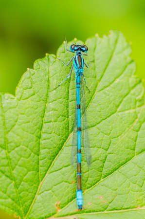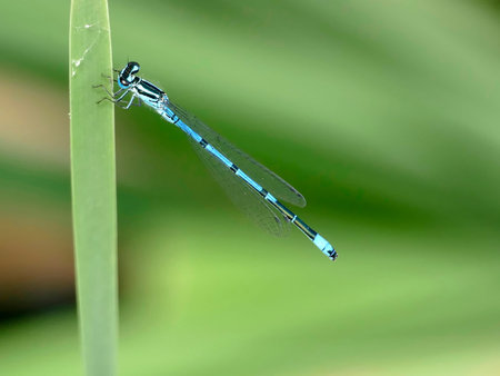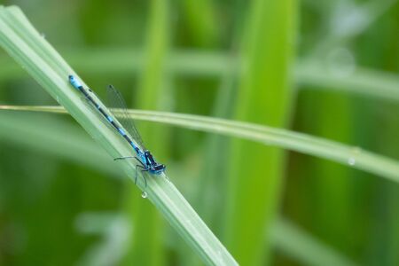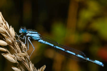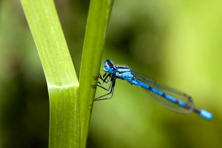 Blue dragonfly Enallagma cyathigerum, common blue damselfly, common bluet, or northern bluet