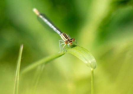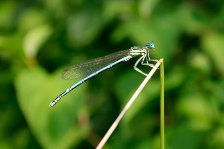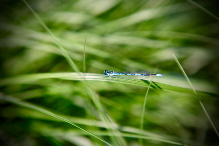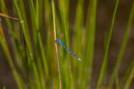 A azure damselfly resting on a grassy plant (Veluwe, The Netherlands)