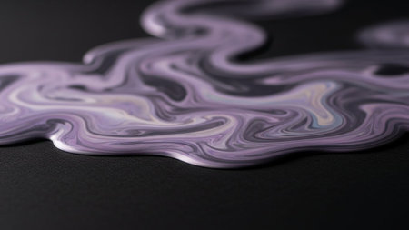 Abstract swirling pattern of purple and white liquid paint creates a marbled texture on a dark surface.