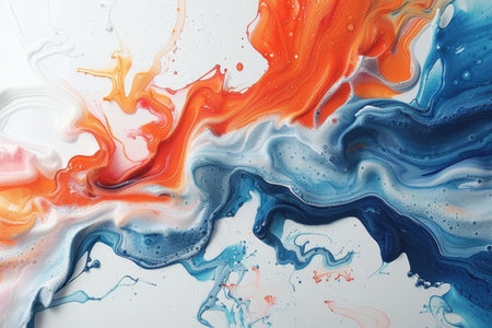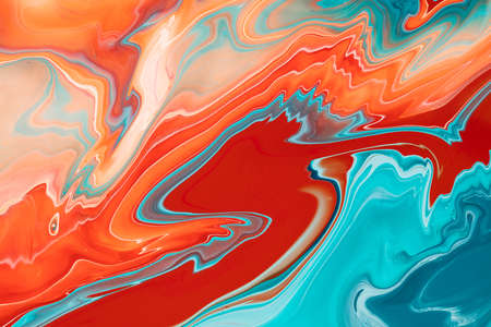 Abstract background of acrylic paints in orange and blue color tones