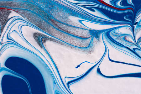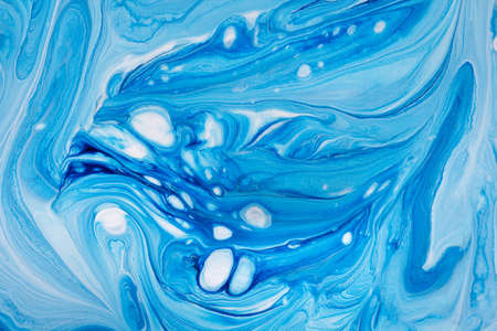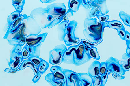 Art hobby. Ink painting. Astract colorful design. Blue white colors mix.
