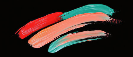 Colored splashes of paint on a black background close-up