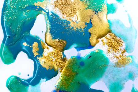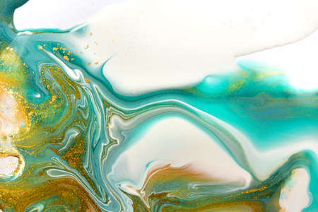 Marble abstract acrylic background. Marbling artwork texture. Agate ripple pattern. Gold powder.