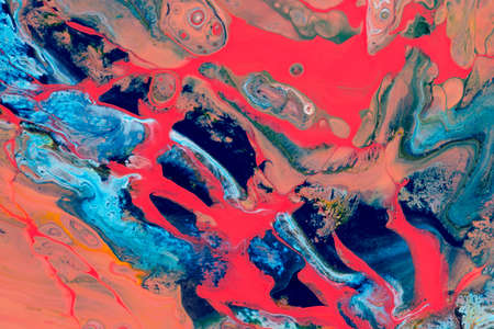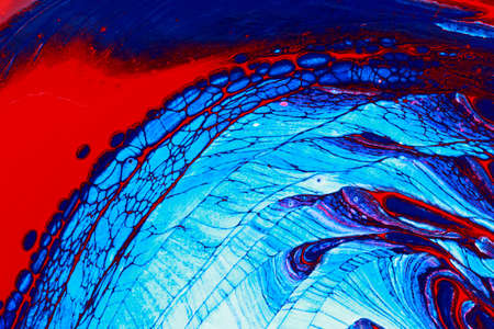 Abstract background of acrylic paint in blue and red tones